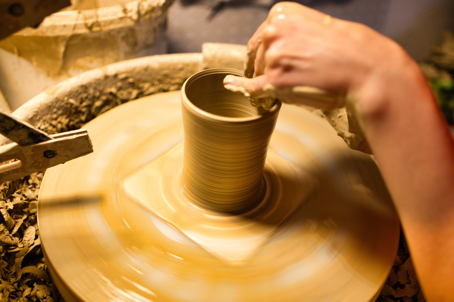 Töpfern ist ein komplexes Thema: Es gibt unzählige Methoden, um eine einzige Tasse herzustellen. Ich habe mich für das Drehen entschieden, bei dem das Gefäß auf der Drehscheibe geformt wird. Anschließend erfolgt das Feinschleifen – in der Keramikwelt als „Abdrehen“ bekannt. Danach werden die Stücke bei 950 Grad gebrannt, glasiert und ein zweites Mal bei 1210 Grad gebrannt. Der spannendste Moment ist das Öffnen des Ofens: In diesem Augenblick zeigt sich das Ergebnis der ganzen Arbeit. Ein einzigartiger und magischer Moment!