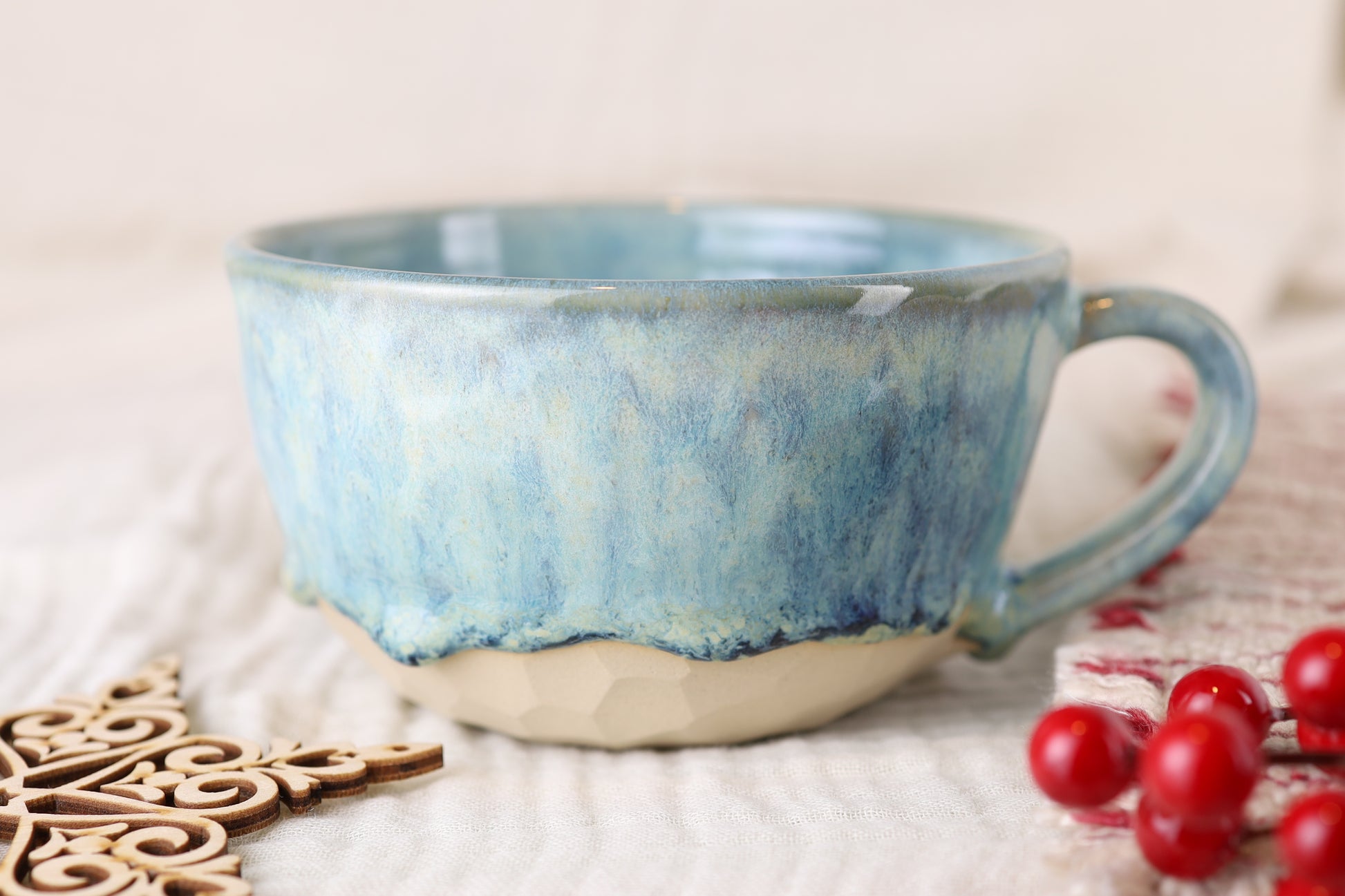 Sofern nicht anders gekennzeichnet, verwenden wir ausschließlich geprüfte Glasuren. Daher sind unsere Stücke spülmaschinen- und mikrowellengeeignet.