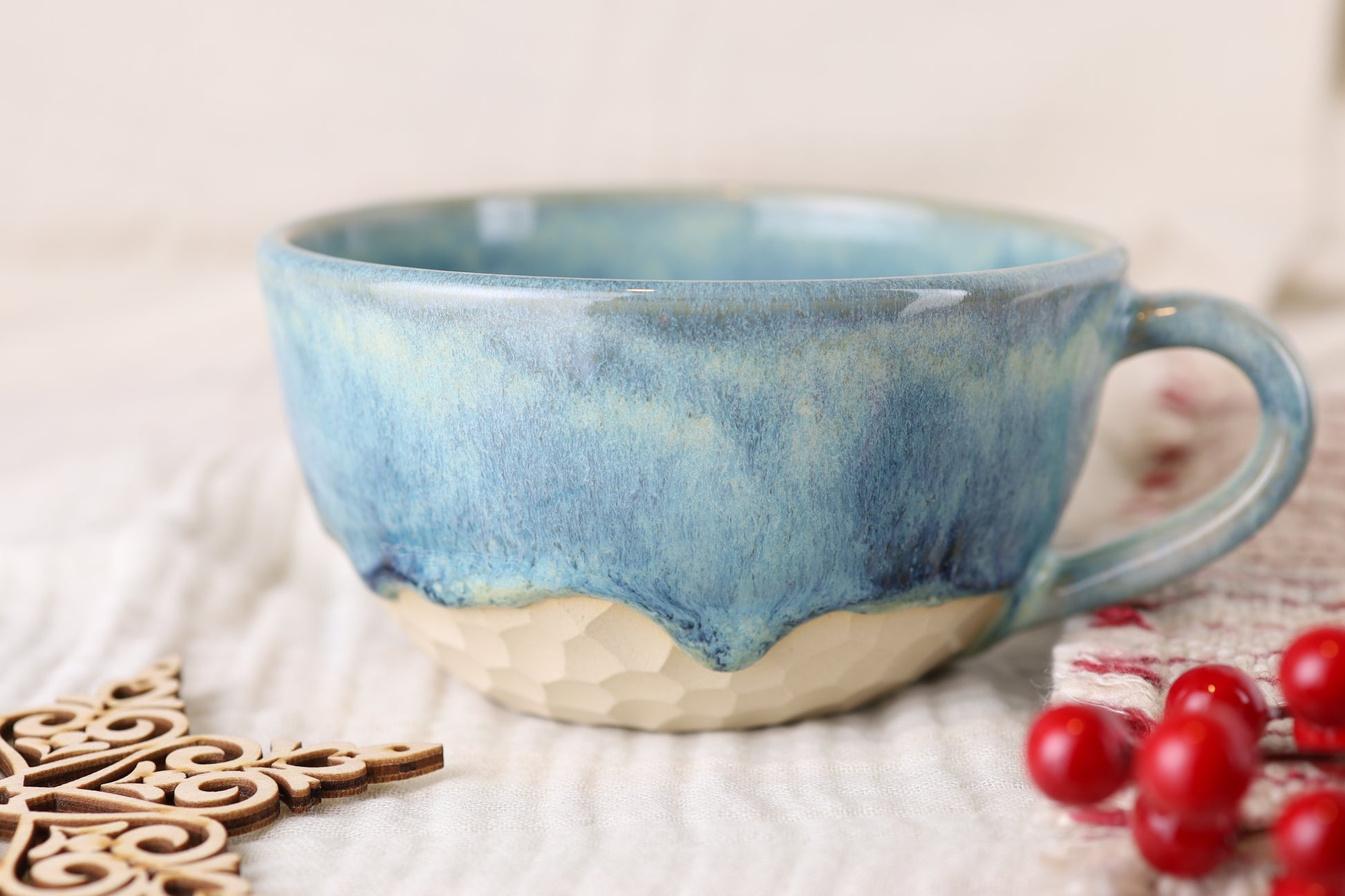 Sofern nicht anders gekennzeichnet, verwenden wir ausschließlich geprüfte Glasuren. Daher sind unsere Stücke spülmaschinen- und mikrowellengeeignet.