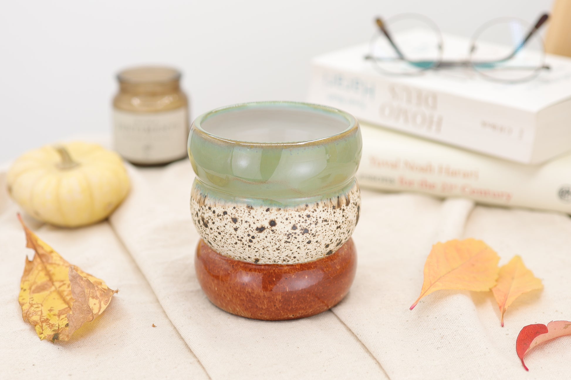 Sanfte Rundungen, die an fließende Wellen erinnern, machen diesen handgefertigten Becher aus Steinzeug zu einem echten Hingucker. Die organische Form liegt angenehm in der Hand und verleiht jedem Schluck Tee oder Kaffee eine besondere Ruhe. Ideal für alle, die klare Formen und natürliche Ästhetik schätzen.