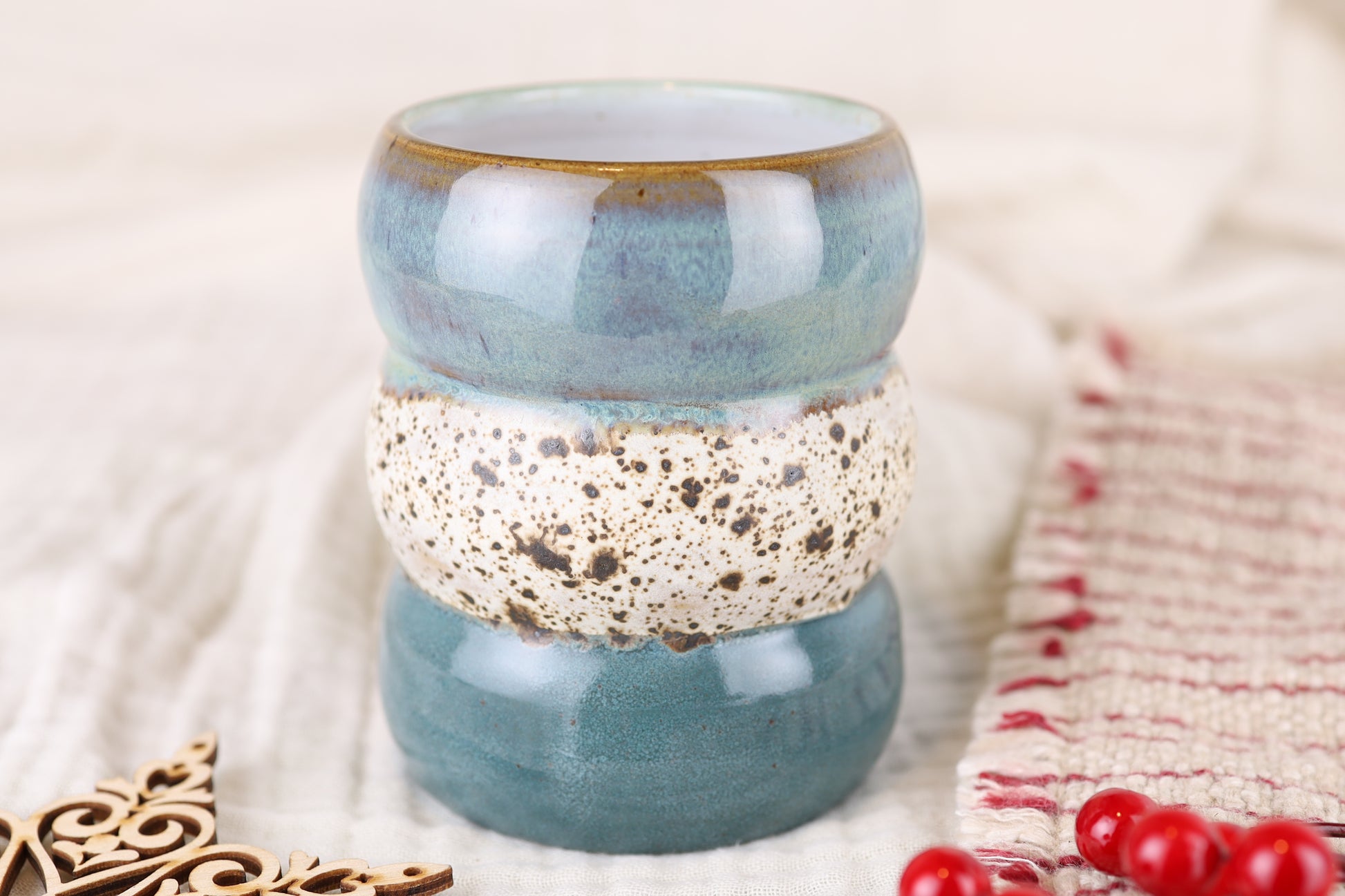 Dieser handgefertigte Becher aus Steinzeug liegt durch seine praktische Daumenmulde besonders angenehm in der Hand. Sein minimalistisches Design ohne Henkel passt hervorragend in ein modernes Wohnambiente – ideal für den morgendlichen Kaffee oder deinen Lieblingstee. Der Becher ist spülmaschinengeeignet und damit ein zuverlässiger Begleiter im Alltag.