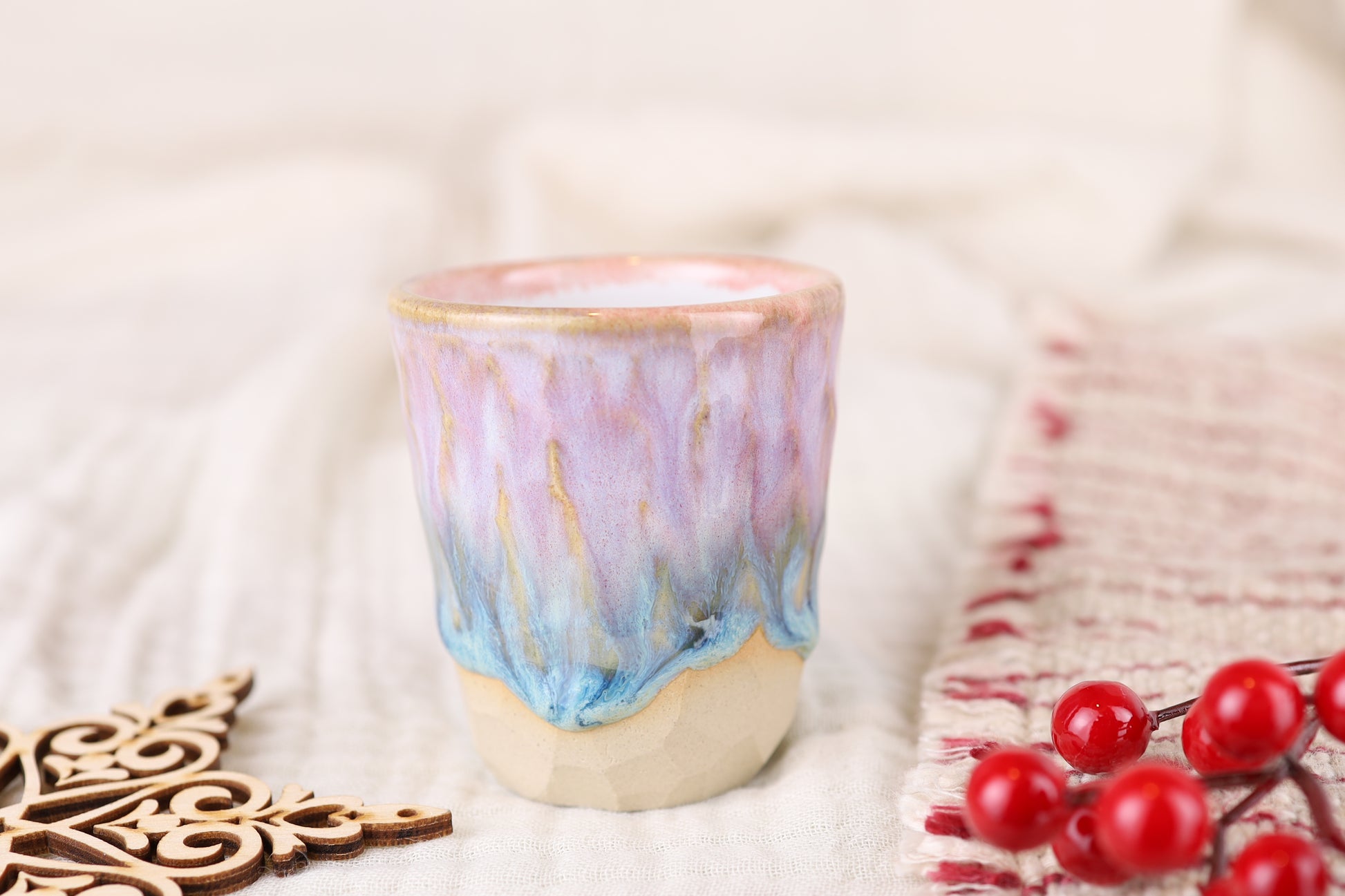 Unsere handgefertigten Espressotassen werden auf der Töpferscheibe gedreht und sorgfältig aus hochwertigem Steinzeug gefertigt. Mit ihrer kompakten Größe sind sie perfekt geeignet für Espresso oder Ristretto und bringen einen Hauch von Handwerkskunst in deinen Kaffeegenuss. Die glatte Glasur und das zeitlose Design machen jede Tasse zu einem kleinen Unikat – robust, langlebig und spülmaschinengeeignet. Perfekt für alle, die besonderen Wert auf Genuss und Stil legen.