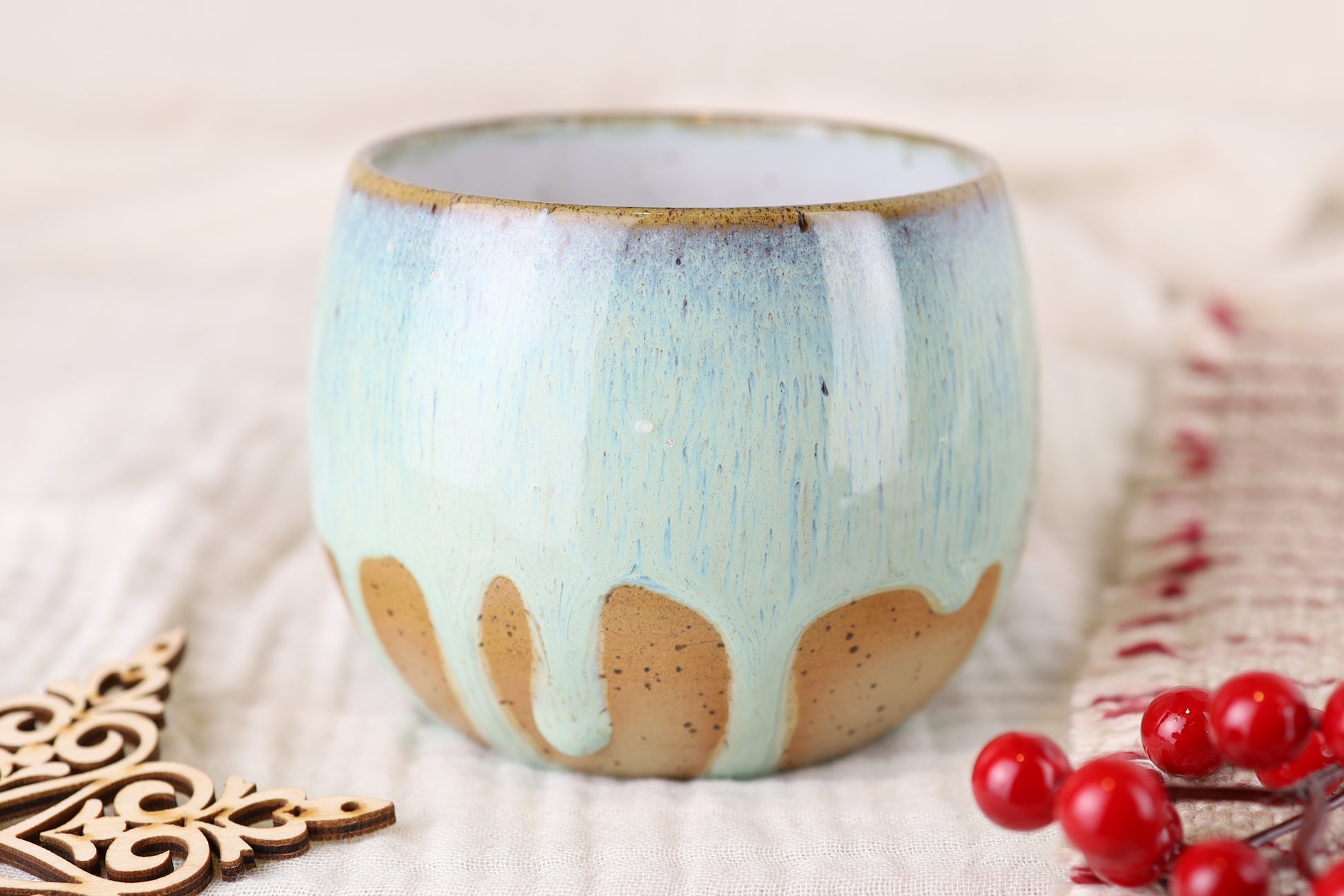 Sofern nicht anders gekennzeichnet, verwenden wir ausschließlich geprüfte Glasuren. Daher sind unsere Stücke spülmaschinen- und mikrowellengeeignet.