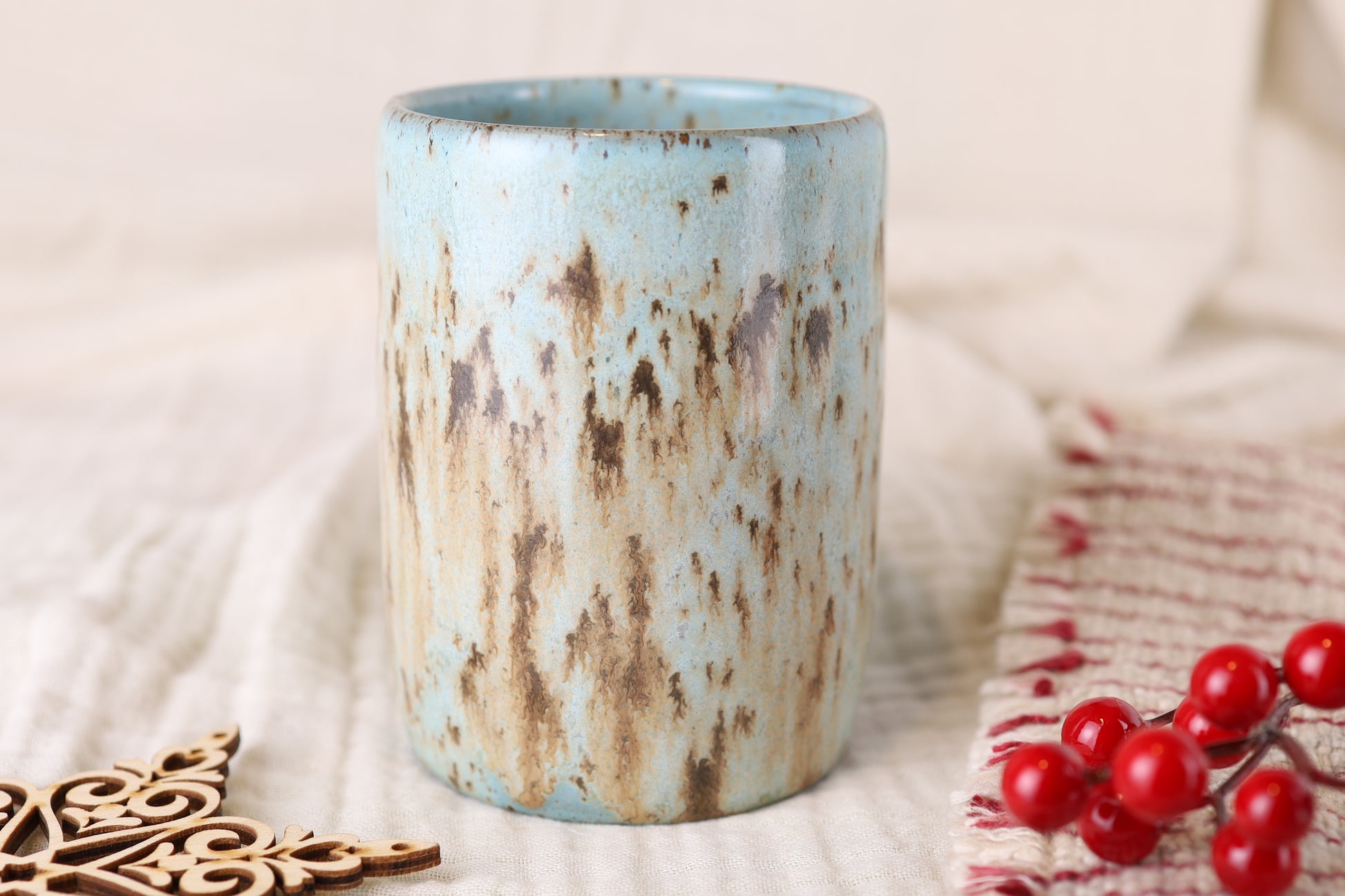Dieser Steinzeugbecher besticht durch seine klare, schlichte Form ohne Henkel. Er passt perfekt in jede moderne Küche und ist ideal für Kaffee oder Tee. Der Becher ist spülmaschinenfest und bietet damit maximale Alltagstauglichkeit.