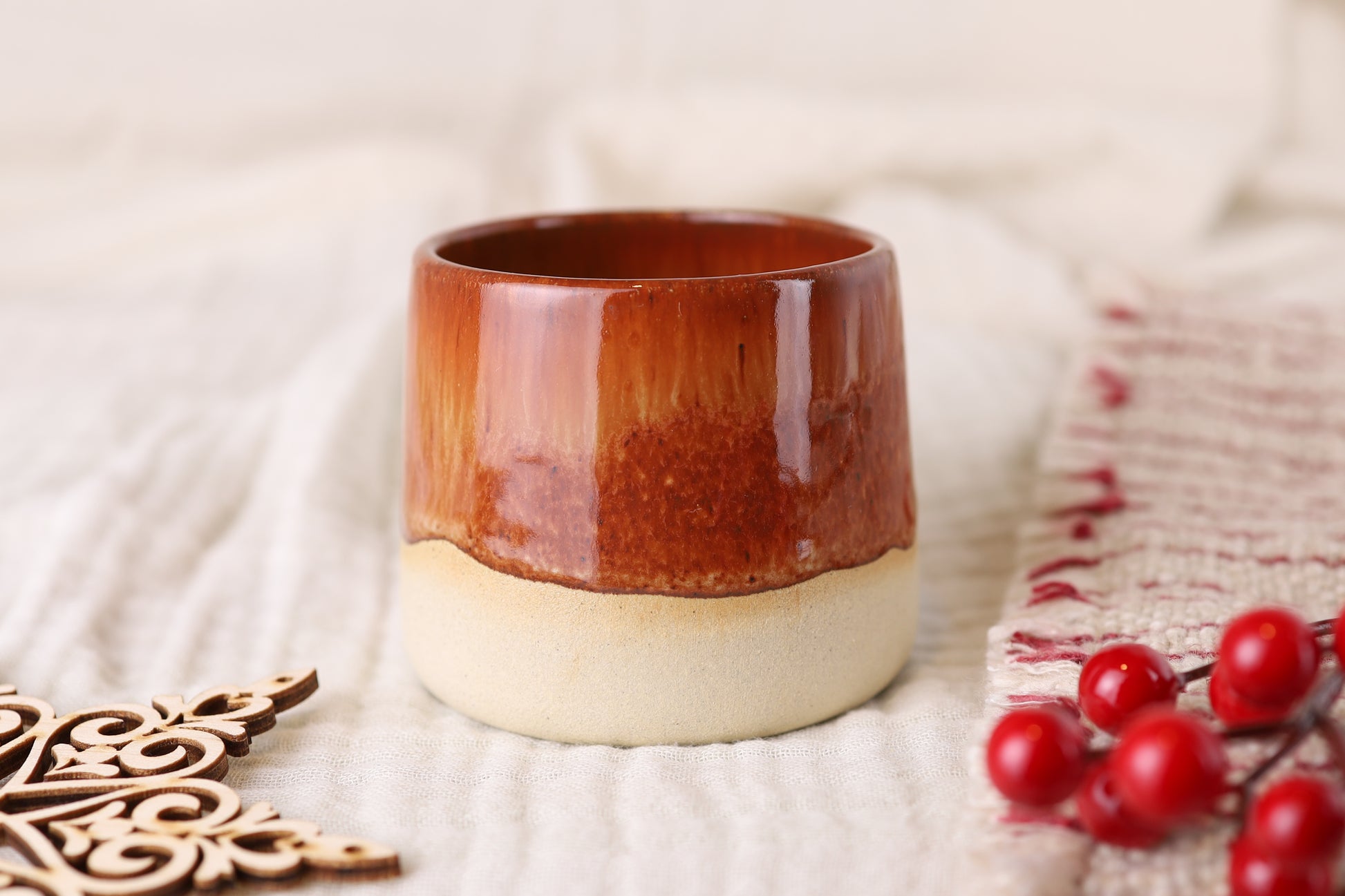 Dieser Steinzeugbecher besticht durch seine klare, schlichte Form ohne Henkel. Er passt perfekt in jede moderne Küche und ist ideal für Kaffee oder Tee. Der Becher ist spülmaschinenfest und bietet damit maximale Alltagstauglichkeit.